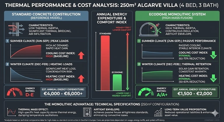 Passive Heating & Cooling: The structure absorbs heat during the day and releases it slowly at night (and vice versa). This natural regulation keeps your home cool in the Portuguese summer and warm in the winter, slashing HVAC costs by up to 60%.